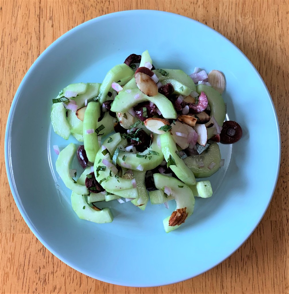 Cucumber Salad with Olives, (Oregano) and Almonds