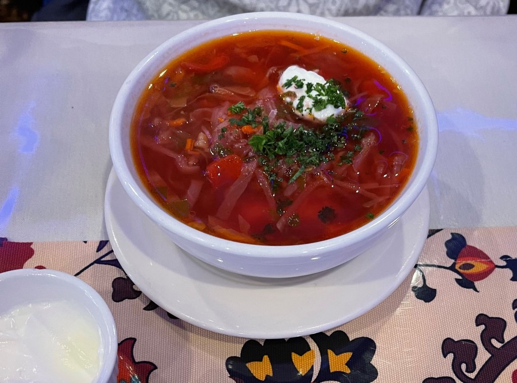 The soup was excellent except the piece of meat on the bottom of the cup. The slice of meat was very tough and grisly, but the rest of the soup was almost sweet, but savory. I do not remember having borsht soup before and hopefully this will not be the last time.